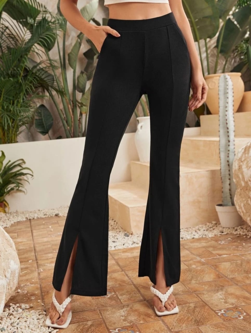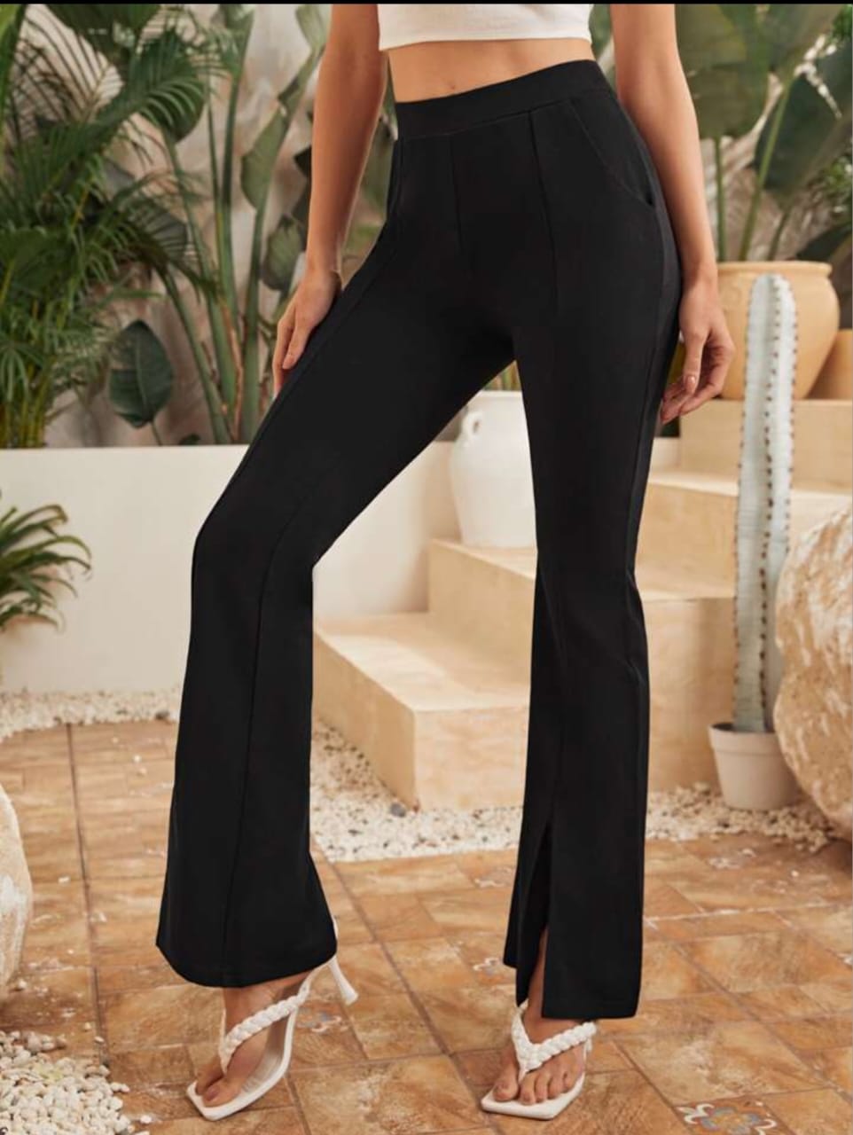 Front Slit Formal Cotton Blend Parallel Trouser Pants Regular fit, Bell Bottom Pants for Women || Flared Trousers & Formal Look.