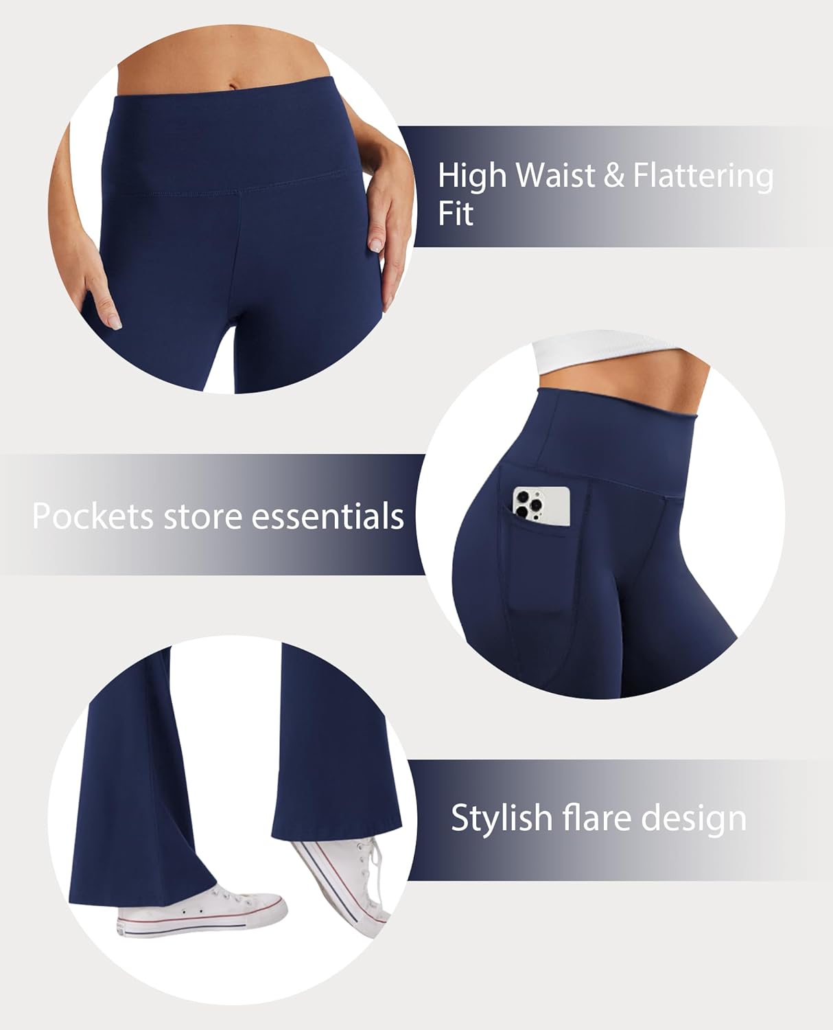 Premium Flare Yoga Pants with Pockets High Waist Casual Bell Bottom Bootcut Leggings.