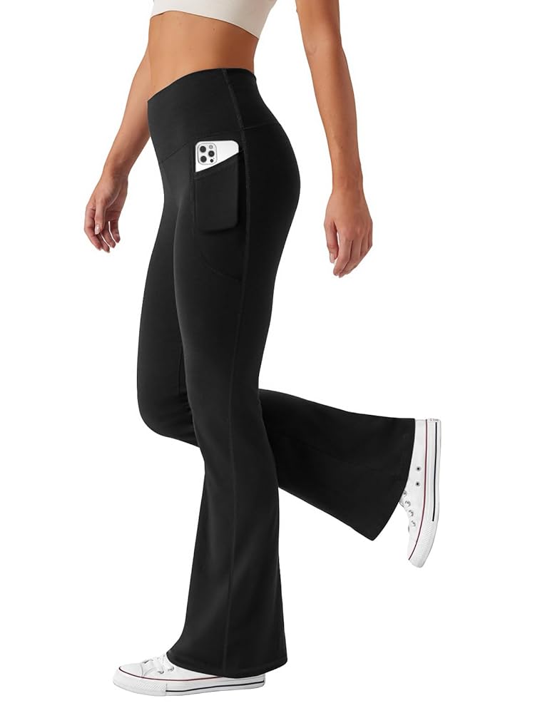 Stylish and Functional Design: With a high waist design, our leggings offer both support and style. The flare design creates a leg-lengthening silhouette, giving you a streamlined look. Plus, they come with side pockets, perfect for storing your essentials like keys or phone while you're on the go.
