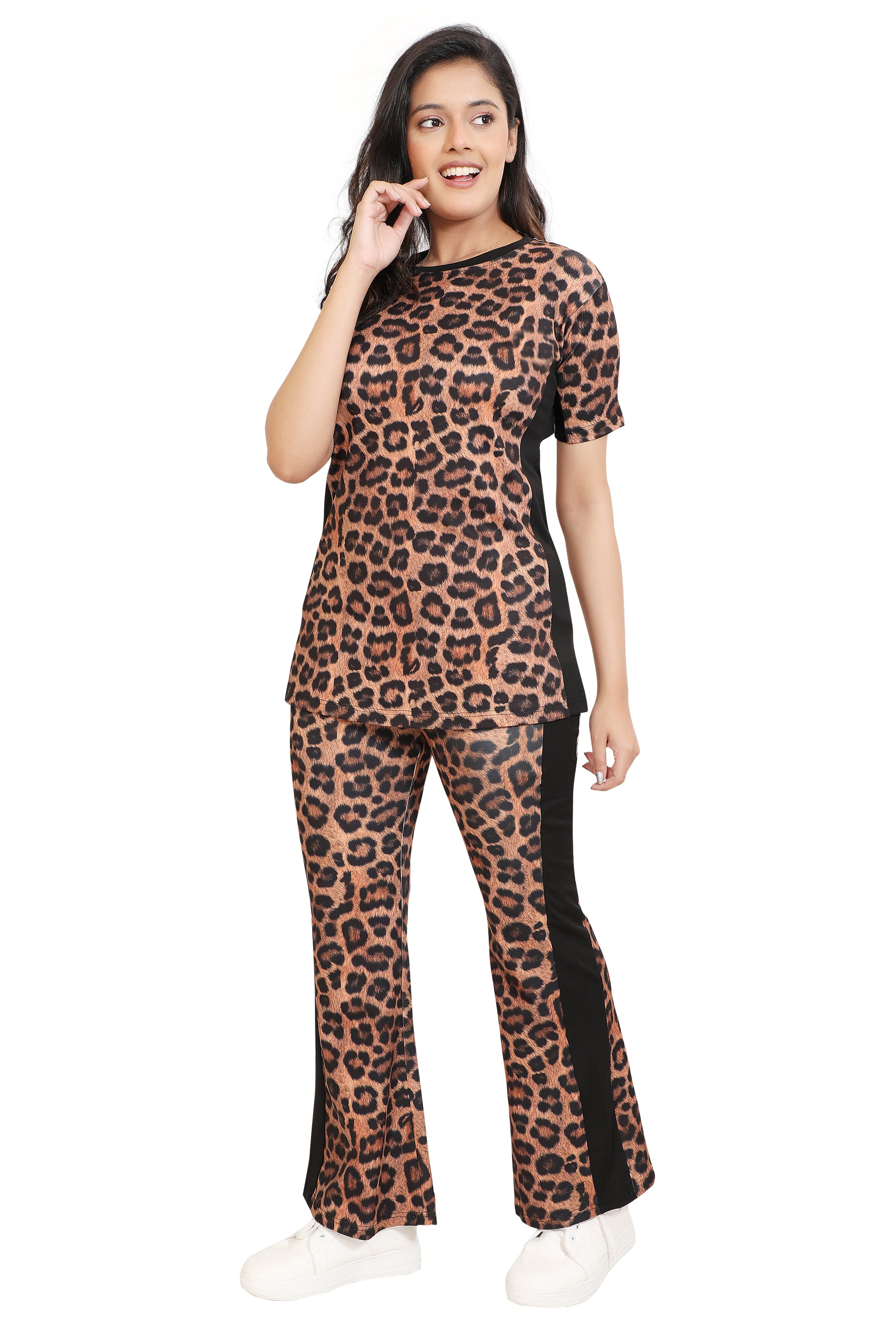 Women's Leopard Print Co-Ord Set | Stylish Animal Print Top & Pants